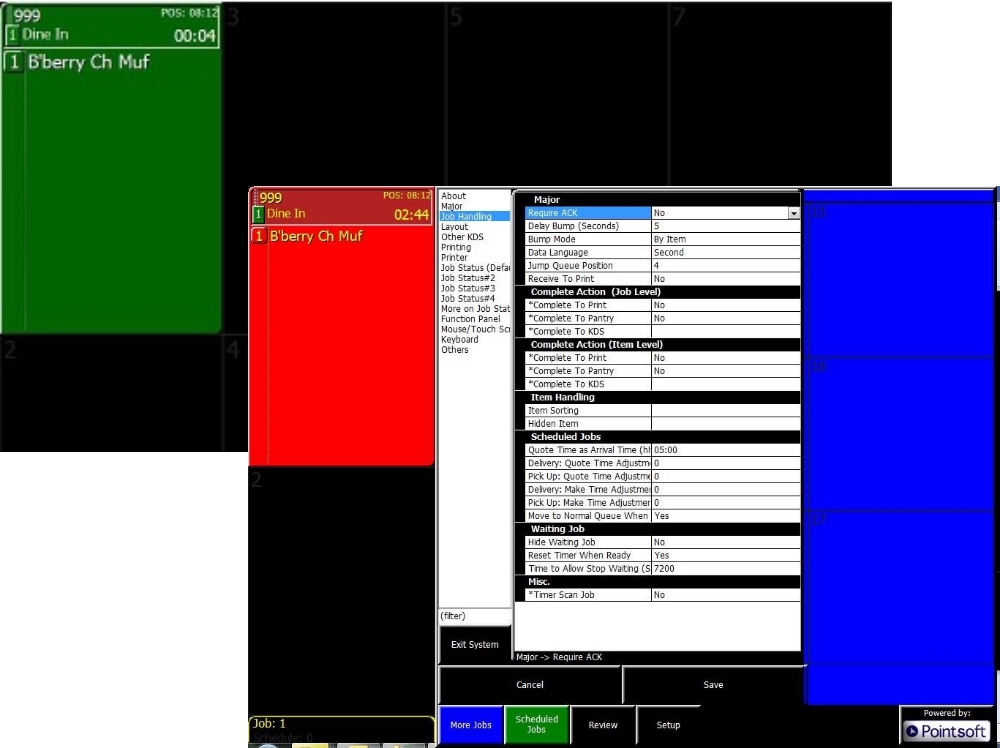 นี่คือจอแสดงผลแบบสัมผัส รายการสั่งซื้อจะถูกโอนจากหน้าจอหนึ่งไปยังอีกหน้าจอหนึ่งโดยอัตโนมัติ เพื่อติดตามความคืบหน้าตลอดขั้นตอนการทำงาน รายการสั่งซื้อจะถูกกำหนดรหัสสีตามเวลาที่ผ่านไปนับตั้งแต่มีการสั่งซื้อ