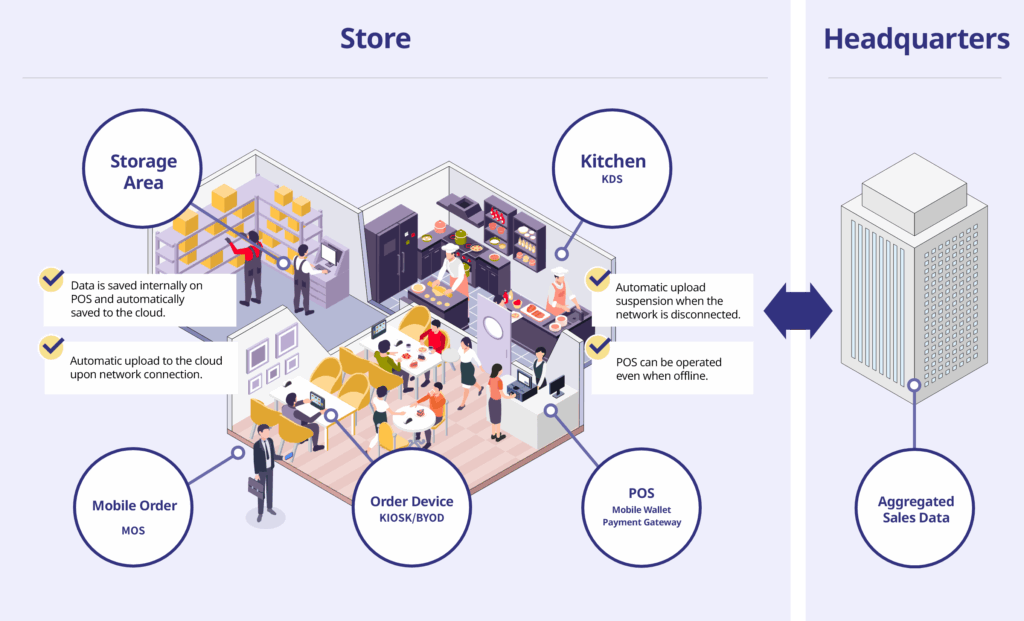 You can secure a complete package of essential systems required for international F&B stores.