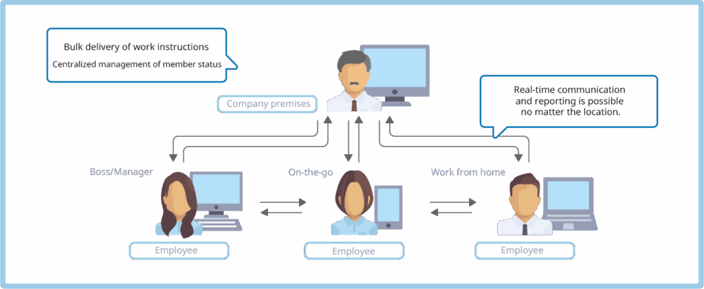 This allows for immediate instruction and advice, improving work efficiency. Unlike email (where receipt and response are uncertain) or free internet SNS platforms (where small mistakes can expose information globally), Gulf TMT is fully equipped with mechanisms to ensure safe, reliable, accurate, and real-time reporting, communication, and consultation within a single company.