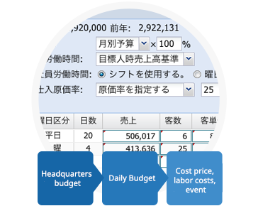 We formulate operational budgets based on a Profit & Loss (P&L), using past performance and scheduled events. Stores then calculate daily targets for sales and customer count from this confirmed budget, allowing them to actively control key figures while monitoring progress toward both achievement levels and month-end results. Promotional measures can then be implemented to meet financial targets.