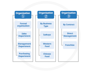 Additionally, you can create organizational groups separate from the actual structure for multiple stores (such as FC or format groups) and configure settings to treat several stores as a single entity.