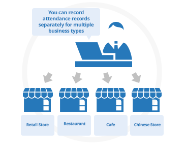The system allows for clocking in and out on a single terminal while switching between multiple stores.