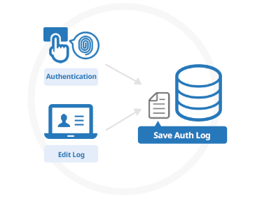 The logs include access logs showing when and who used which functions, authentication logs showing who punched in and when, and the history of who updated the master and when.