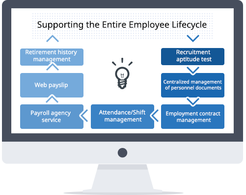 Furthermore, to deal with labor shortages, our system is designed to support complex working rules and hourly wage structures, actively promoting flexible and varied working styles. By integrating aptitude testing, web pay slips, and outsourced payroll calculation, we enable strategic hiring and elevate overall management quality.