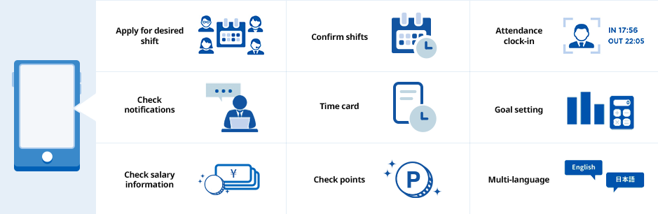 Functions for applying for shift recruitment and requesting shift changes can be easily done from smartphones.