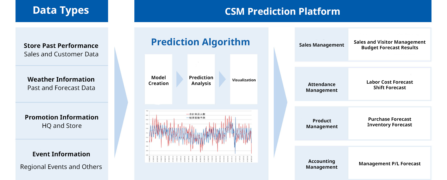 Based on predicted sales, we automatically calculate optimal labor and purchasing costs. This drives improved management by enabling store-level
