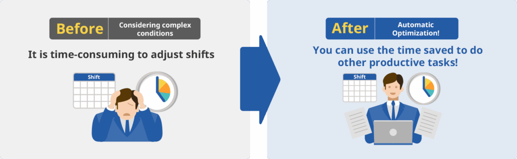 The Gulf CSM predictive shift automatically organizes shifts using AI and proposes optimal staffing! Various requirements can be customized according to the circumstances of the company or department. The accuracy of the shifts does not depend on the experience or skills of the store manager. Furthermore, by using the employee app, communication with staff becomes smoother!