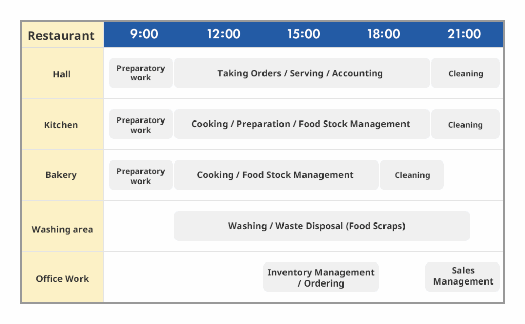 We create model shifts for each role, allocated with tasks necessary for store operations.