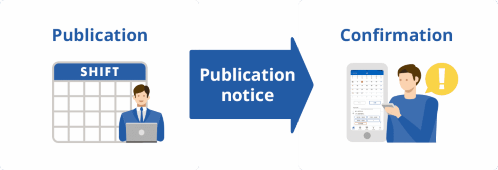 Finally, you can “publish” the shift and notify staff members on their smartphones, allowing them to check their shifts.