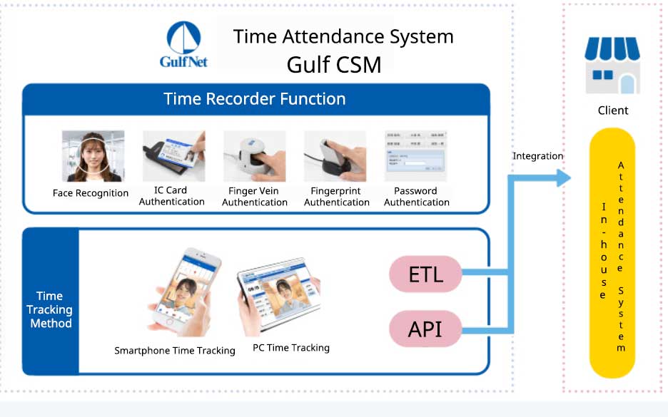 The Gulf CSM time attendance management system is equipped with various functions to solve labor challenges. It has a facial recognition clock-in system that allows for more accurate and smoother staff management. Additionally, by automating the system, the efficiency of management operations increases, leading to a reduction in the workload of HR and admin staff.