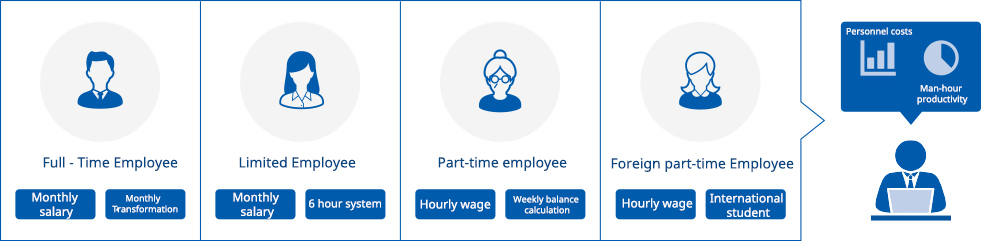 To manage labor costs, it is important to track and understand daily labor costs. Quickly and accurately analyze labor costs and promptly check management indicators such as labor cost ratio, FL ratio, and operating profit margin. A speedy analysis of the labor cost ratio leads to business improvement in work planning.