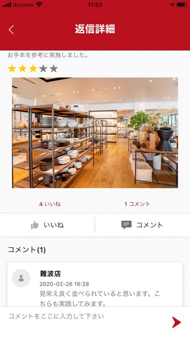 การตอบกลับของ ToDo จะมองเห็นได้โดยพนักงานคนอื่น ๆ พวกเขาสามารถให้ข้อเสนอแนะโดยกดปุ่ม “ถูกใจ” หรือส่งข้อความสั้น ฟีเจอร์นี้ช่วยให้เกิดการแชร์ข้อมูลซึ่งกันและกัน เป็นการกระตุ้นแรงจูงใจของพนักงาน
