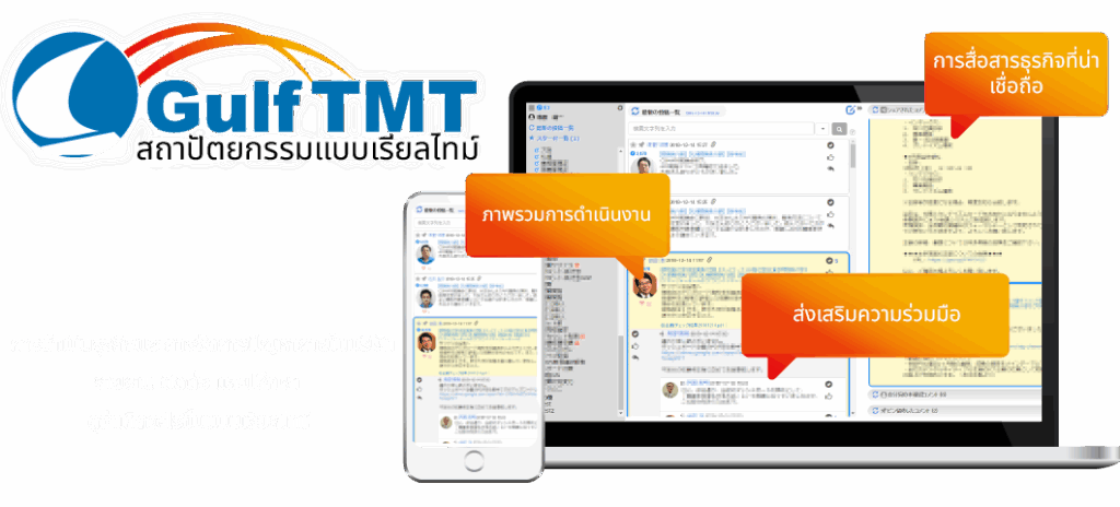 Gulf TMT คือโซเชียลเน็ตเวิร์กองค์กรที่พัฒนาขึ้นเพื่อใช้แลกเปลี่ยนข้อมูลสำคัญต่อการดำเนินธุรกิจโดยเฉพาะ ช่วยให้บริษัทที่มีพนักงานทำงานนอกสถานที่จำนวนมาก หรือมีสำนักงานกระจายอยู่ต่างชั้น ต่างสาขา ทั้งในญี่ปุ่นและต่างประเทศสามารถมองเห็นการทำงานและสิ่งต่างๆ ที่เกิดขึ้นแบบเรียลไทม์