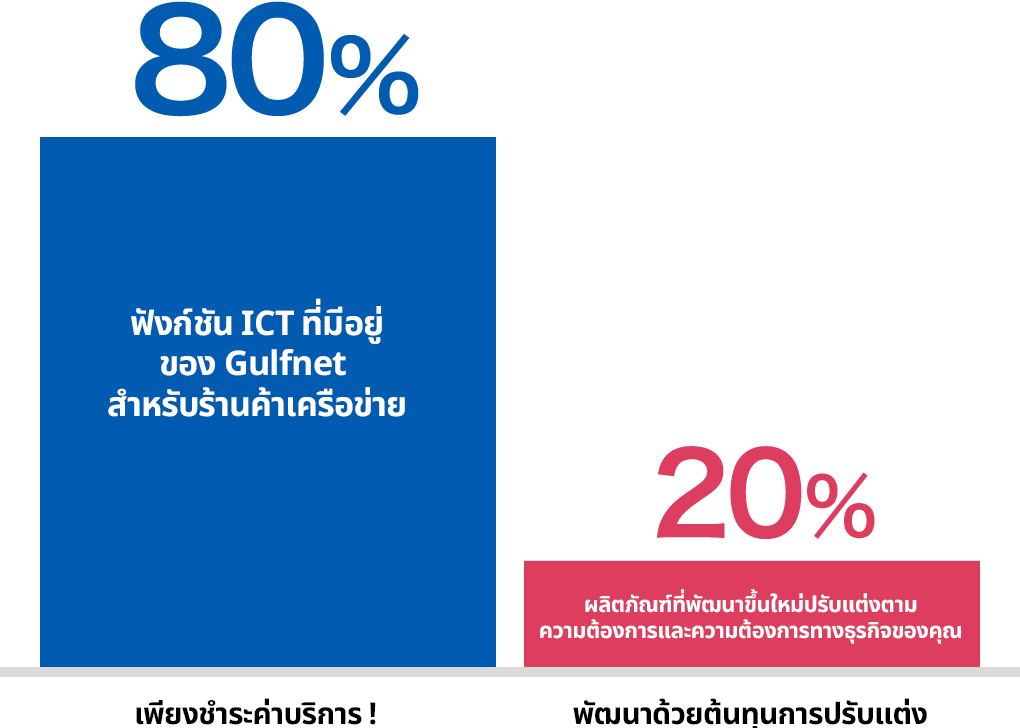 ทำให้ลูกค้าสามารถใช้ระบบ ICT ที่เหมาะสมกับร้านค้าสาขาได้อย่างเต็มที่ ด้วยค่าใช้จ่ายในการพัฒนาและค่าบริการรายเดือนเพียง 20% ของต้นทุนปกติ