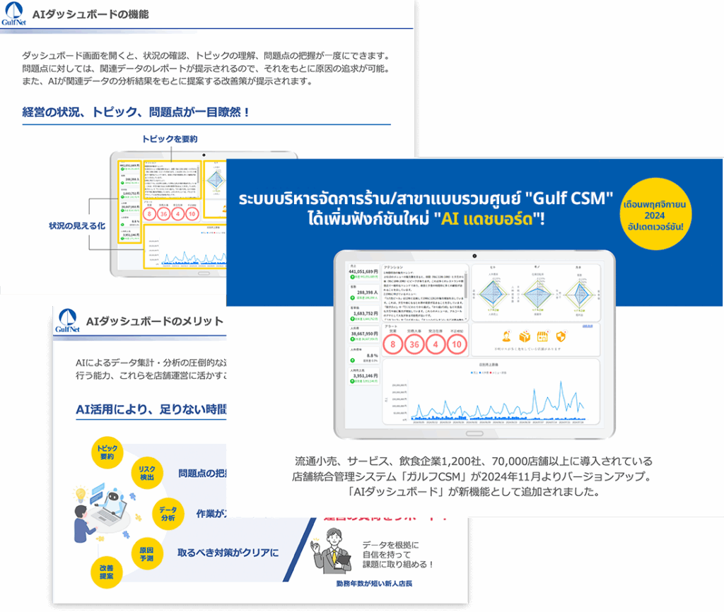 เรานำเสนอรายละเอียดว่าฟังก์ชันข้อเสนอแนะของ AI แดชบอร์ดสามารถช่วยเหลือท่านได้อย่างไร พร้อมตัวอย่างการแสดงผลหน้าจอจริง