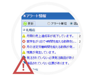 ฟังก์ชันควบคุมร้านค้าของเราจะส่งแจ้งเตือนไปยังสำนักงานใหญ่ท่วงทีเมื่อมีความผิดปกติต่างๆ เช่น การทำงานล่วงเวลาเกินมาตรฐาน การจ้างพนักงานที่ยังไม่บรรลุนิติภาวะมาทำงานกะดึก หรือยอดขายที่ไม่เป็นไปตามเป้าหมาย การแจ้งเตือนแบบเรียลไทม์นี้จะช่วยลดความเสี่ยงด้านกฎหมายแรงงาน ปัญหาการทุจริต การละเลยคำร้องขอจากสาขา จึงลดปัญหาเชิงปฏิบัติการของธุรกิจได้อย่างมีประสิทธิภาพ