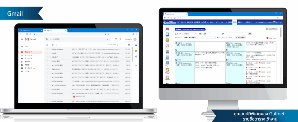 ฟีเจอร์ที่ GulfNet ถูกพัฒนาขึ้นโดยผู้เชี่ยวชาญ ไม่ว่าจะเป็นหน้าพอร์ทัลที่ออกแบบให้คุ้นตาเหมือนกรุ๊ปแวร์สัญชาติญี่ปุ่น ผังแสดงสถานะของการทำงานตามหน่วยงาน รวมถึงปฏิทินแบบรายสัปดาห์ที่ใช้งานง่าย ช่วยให้ผู้ใช้ที่คุ้นเคยกับกรุ๊ปแวร์ญี่ปุ่นสามารถเปลี่ยนมาใช้ Google Workspace ได้อย่างราบรื่น ฟีเจอร์เหล่านี้เชื่อมต่อการทำงานร่วมกับฟังก์ชันหลักของ Google Workspace อย่างแน่นหนา และส่งมอบให้ทุกองค์กรที่สั่งซื้อ Google Workspace ผ่าน GulfNet โดยไม่มีค่าใช้จ่ายเพิ่ม